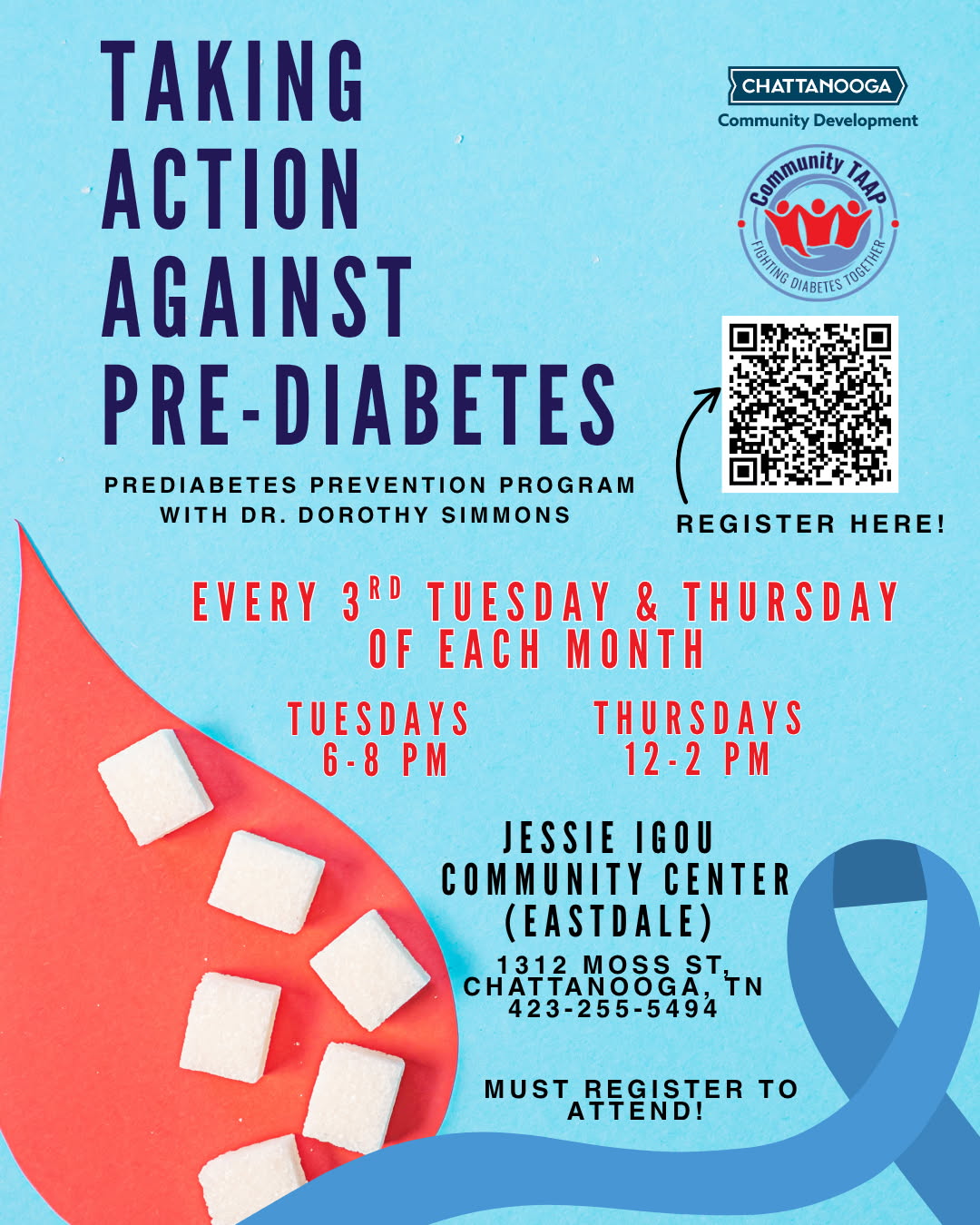 Taking Action Against Prediabetes. Empowering Tennessee communities through education, prevention, and support in the fight against diabetes.